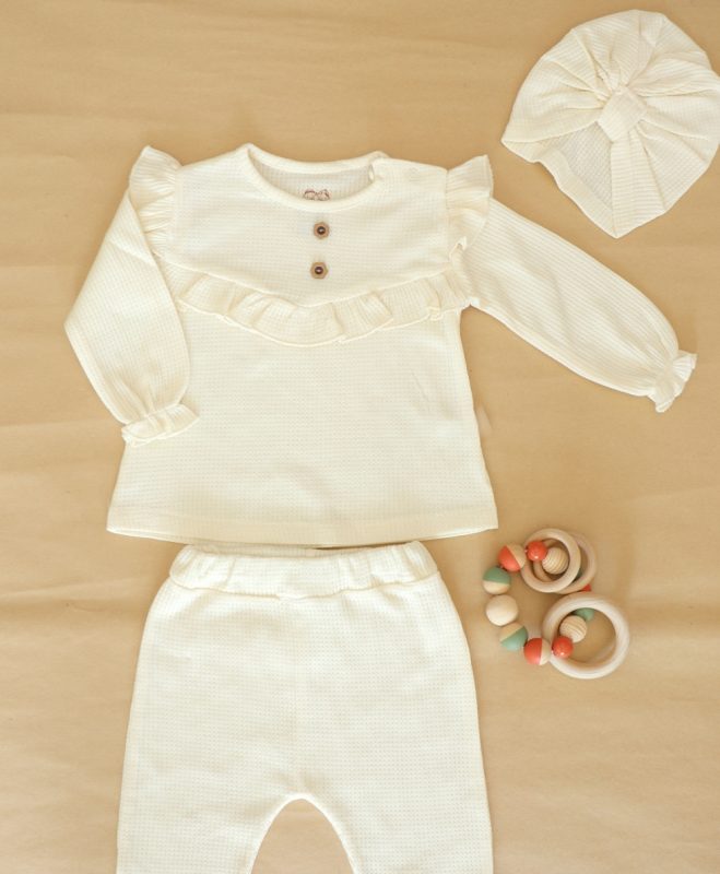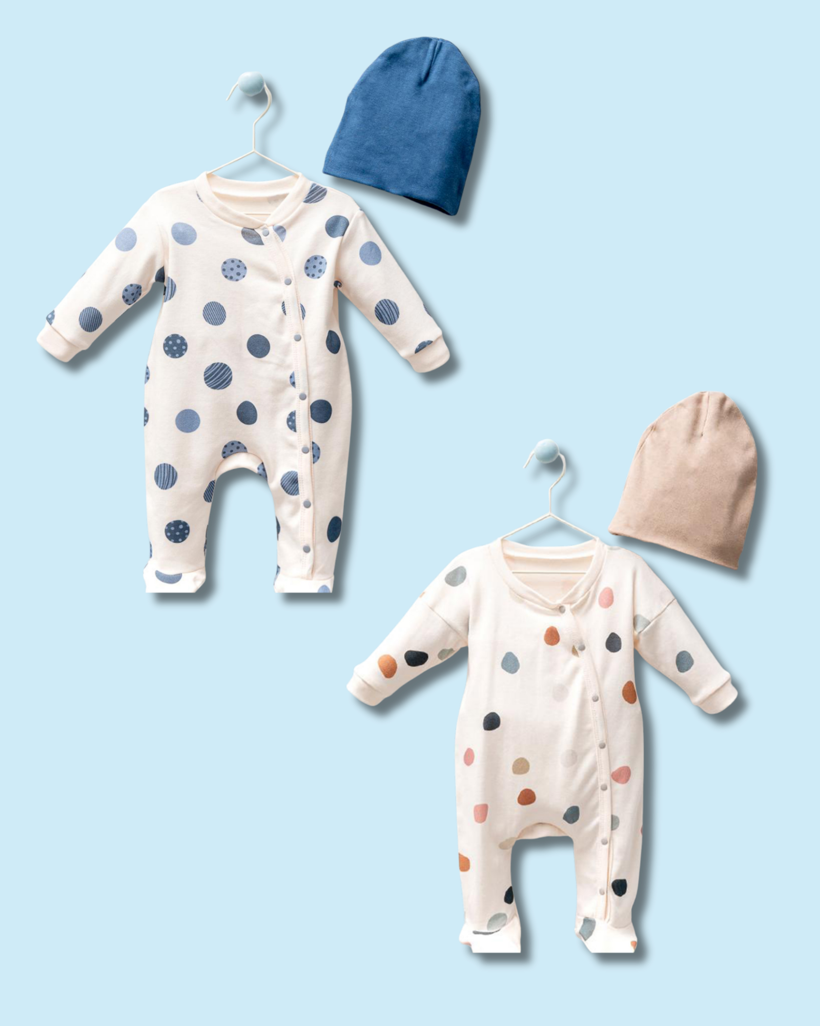 İlk günlerinden itibaren hem rahat hem şık olsun diyenlere özel: Tulum, zıbın, şapka, eldiven ve önlükten oluşan bu set, bebeklerin hassas ciltlerine uygundur. Sevimli desenleriyle hem evde hem dışarıda rahat bir kullanım sunar.